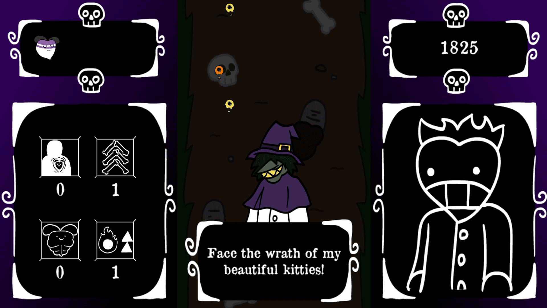 Grims Gifts is a game about getting killed by various Halloween themed creatures. Don't worry though, it's not all bad. Every time you die you get the chance to upgrade yourself.